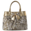 Tessuto: Seta e cotone. Pelle lucida marrone.